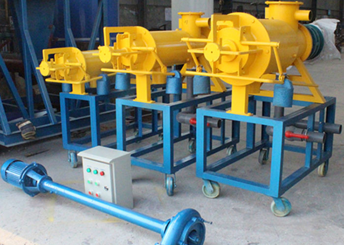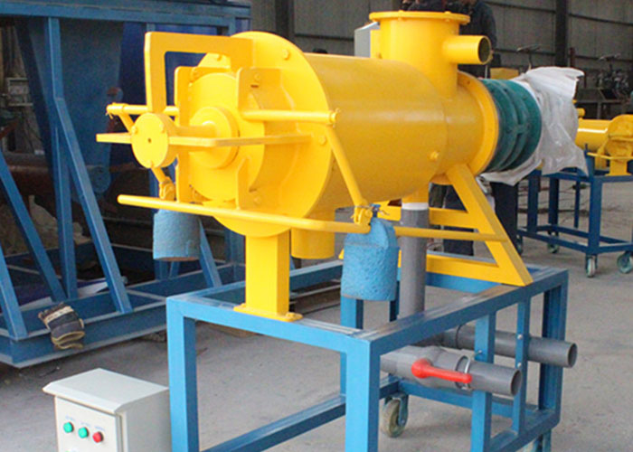 螺旋擠壓式固液分離機主要由主機、液下切割泵、電控箱、 管道等設(shè)備組成。主機由機體、篩網(wǎng)、擠壓絞龍、減速電機、配重錘、卸料裝置等部件組成。其工作過程如下:液下切割泵將含水較大的糞水抽入分離機網(wǎng)籠內(nèi),經(jīng)過前部篩網(wǎng)的初步過濾,大部分水分從篩網(wǎng)溢出流進(jìn)排水管。此時經(jīng)動力傳動, 擠壓絞龍將糞水逐漸推向機體前方,同時不斷提高前緣的壓力, 迫使物料中的剩余水分在邊壓帶濾的作用下擠出篩網(wǎng),流出排水管。擠壓機的工作是連續(xù)的,其物料不斷泵入機體,前緣的壓力不斷增大,當(dāng)大到一定程度時,就將卸料口頂開,擠出擠壓口,達(dá)到擠壓出料的目的。為了掌握出料的速度與含水量,可以調(diào)節(jié)主機下方的配重塊,以達(dá)到滿意適當(dāng)?shù)某隽蠣顟B(tài)。使用螺旋擠壓式固液分離機,其自動化程度高、操作簡單、易維修、日處理量大,動力消耗低、適合連續(xù)作業(yè)。其關(guān)鍵部件選用不銹鋼材料制成,是規(guī)?;B(yǎng)殖場理想的固液分離設(shè)備,能大幅度提高固液分離與效益。但同時對豬場的排水工藝、環(huán)境的特點、貯糞池的容積與結(jié)構(gòu)、排糞溝的落差等諸多因素又有著嚴(yán)格的要求。螺旋擠壓式固液分離機無論在國內(nèi)外都是同行業(yè)技術(shù)較為先進(jìn)的設(shè)備。